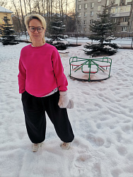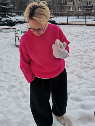 Отличная выкройка. Свитшот просто идеальный получился. Шила из футера 3х нитки микроначеса. Получился мягкий как облачко. Думала горловины из этой же ткани не будет хорошо лежать, а нет-все прекрасно.