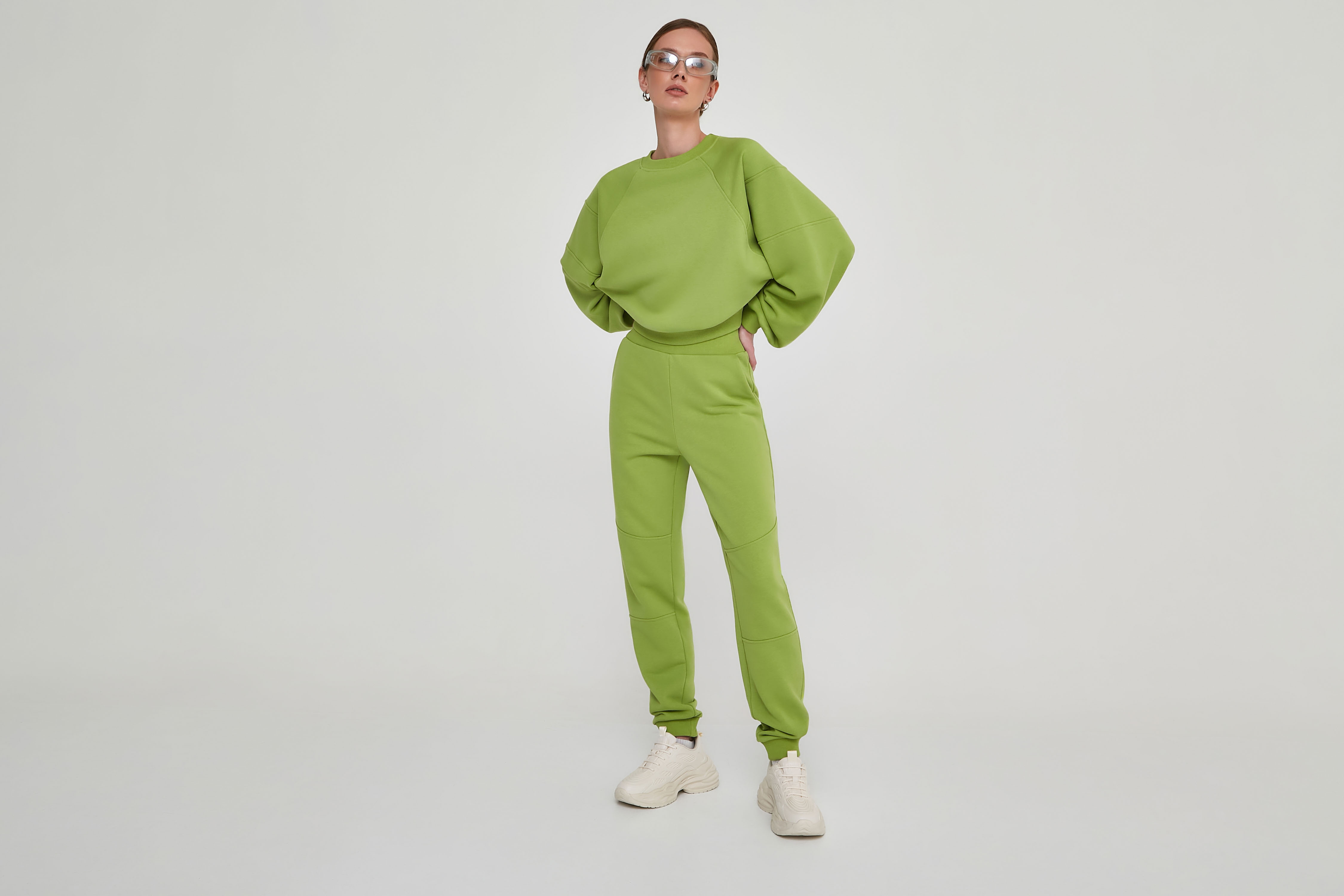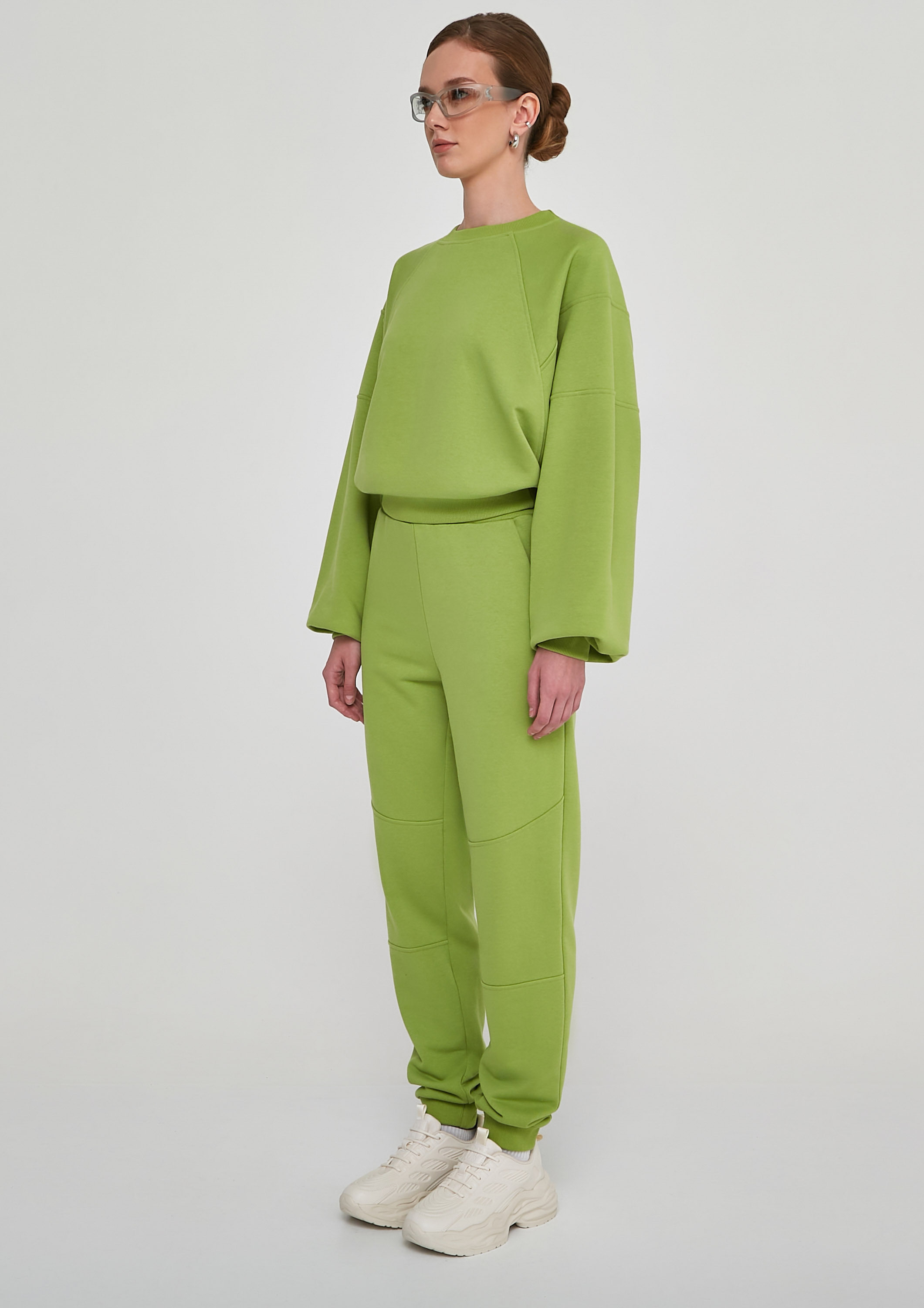 Классный свитшот с рукавами реглан большого объёма, посадка отличная! 👍 сшила костюм с брюками Elza из трехниточного петельного футера