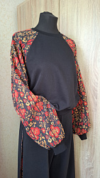 Теперь это одна из моих любимых выкроек. Манжеты и горловину также делала из футера, вид, конечно, отличается от варианта с рибаной, но для первой пробы нормально.