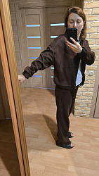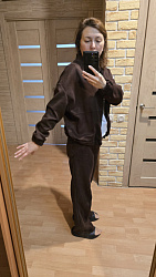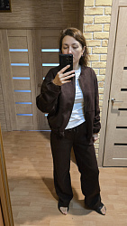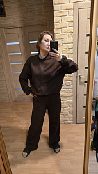 В этом бомбере проходила все лето, отличное альтернатива худям и оверам. Отличная выкройка повторю ее обязательно в светлом цвете, сшила из замши, получился отличный костюм. Ничего с выкройкой не делала, все подошло.