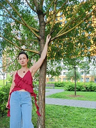 Как только вышла новая коллекция, я сразу же влюбилась в этот топ😍 Сшила его из японского шелка, размер брала свой, и все село отлично. Шьется очень легко, все просто и понятно. Скорее уже хочется жару, чтобы выгулять свой новый топ)