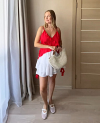 Топ классный, чуть уменьшила длину бретелей. Смотрится необычно!
