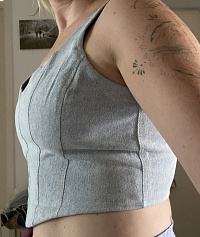 Этот топ - просто любовь с первого взгляда. И выкройка, и инструкция выше всяких похвал. Топ получился идеальный. Материал - деним. Буду шить еще других цветов.