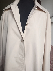 Очень стильный вышел плащ, будет актуально не один сезон. Цвет базовый, размер 44/170. Достаточно объемный, можно было смело брать на размер, а то и два меньше. Шила для мамы. Удобство узнаем в процессе. В целом довольна, шьётся легко, инструкция понятна, но все же воротник лучше втачать как рубашечный. Спасибо!