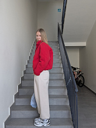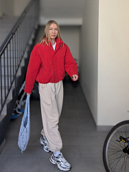 Красный цвет оказался очень универсальным — отлично стилизуется с разными вещами, работает и в спокойных, и в более смелых сочетаниях.