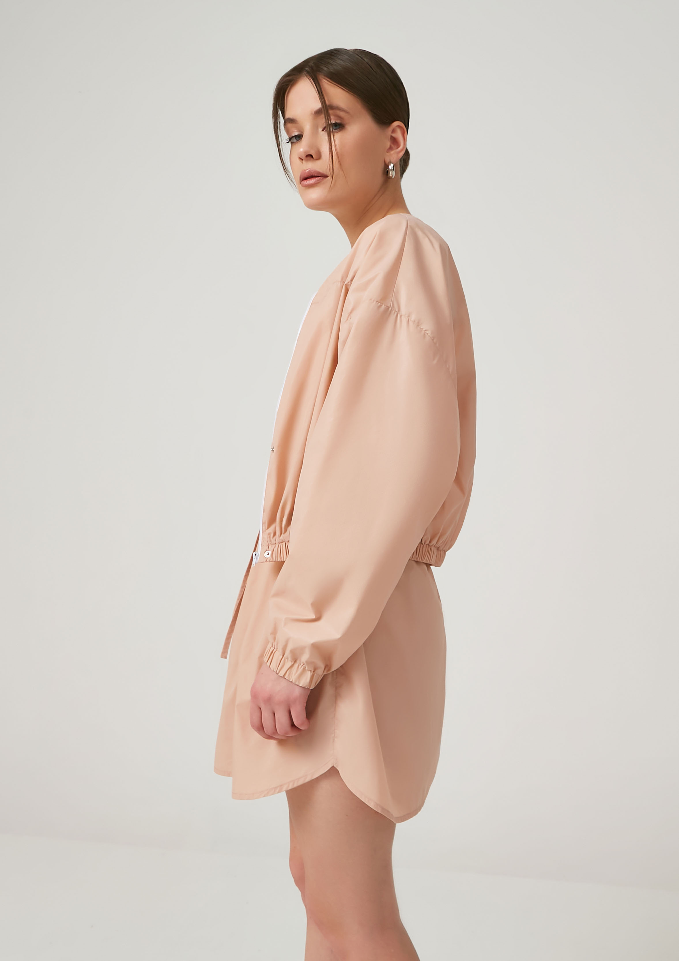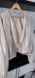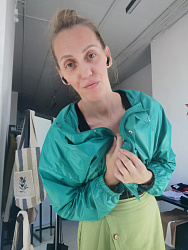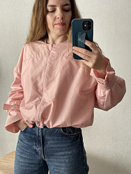 Ткань выбрала лёгкую, невесомую: сатин крэш. На подкладку поставила тенсель вуаль. Ветровка получилась нарядной и очень лёгкой! Добавила по 3 см на рукавах и 4 к длине.