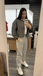 Отличная выкройка! Из изменений: не делала планку. Шила из костюмной ткани в полоску брюки и ветровку, получился костюм.