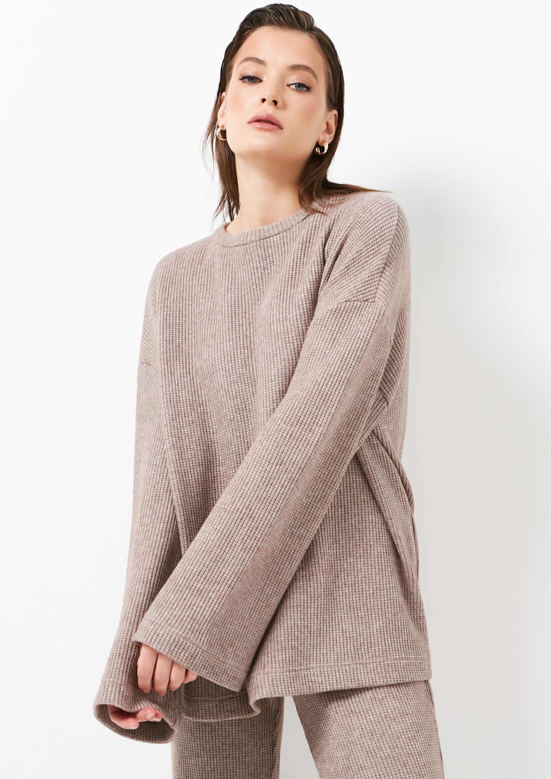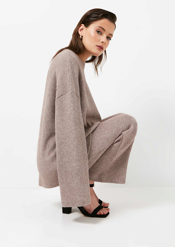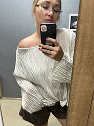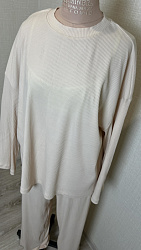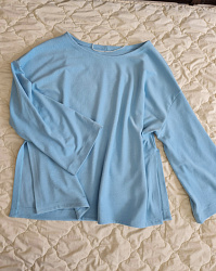 Кофта оверсайз, на низкий рост сделаны вырезы, они прямо супер, если надо спереди вправить в штаны, на высокий рост не актуальны, конечно, но мне просто идеально.