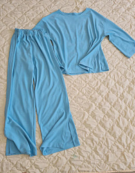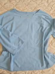 Выкройка мне понравилась. Горловина красиво лежит на теле. Изменила только рукава, добавив манжеты.