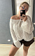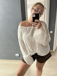 Я этот лонг шила из вискозного, ажурного трикотажа. Размер на 1 меньше своего. Изменила горловину, чтобы плечо было спущенное.
