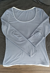 Отличная выкройка базового лонгслива. Шила из вискозной кулирки, получился нежнейший комфортный лонг. В выкройке ничего не меняла, только обтачку горловины заменила на кружевную резинку.