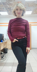 Посмотрела отзывы на сайте, возникли сомнения. Думала, сядет лонгслив не очень. Взяла для эскперимента тонкую евроангору. Получилось круто! Самое долгое в шитье это складки сделать. Остальное быстро. На работе получила миллион комплиментов. Подруга боялась, что складки увеличат зону живота, но нет. Складки наоборот все скрыли