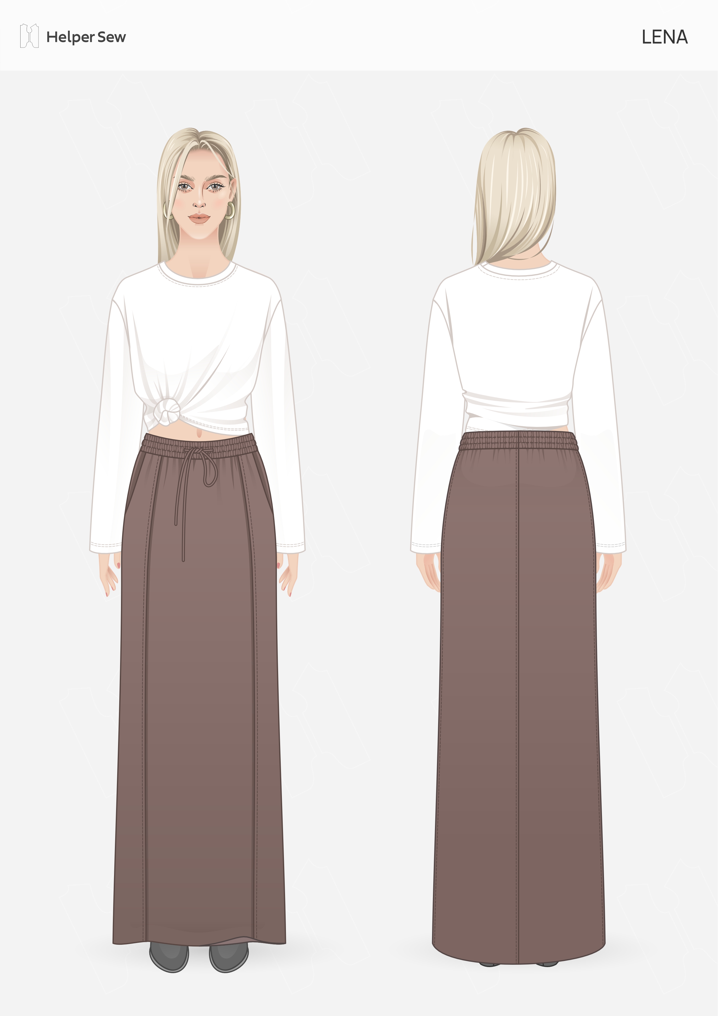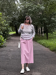 Юбка классная! Шила ее в дополнение к свитшоту. Инструкция понятная. Посадка отличная! Спасибо Хелперсью за полночные группы! Единственное, когда буду шить юбку в другом цвете, добавлю маленькие разрезы по бокам или один разрез сзади, так как немного узковата она снизу для моего широкого шага.
