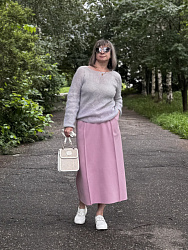 Юбка классная, шила из трехнитки с эффектом велюра, по переду швы сделала открытыми, шьётся очень быстро, ходить очень удобно, разрезы не нужны. Спасибо, что создаёте нам возможность шить крутые изделия )