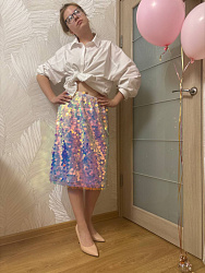 Юбка slip самое классное решение для юбок из стабильных или тонких тканей. Купила пайетки ,coin, но ткань оказалась не динамичной по направлению пайеток, и я долго искала выкройку с заложенными прибавками и отсутствием вытачек ( да можно было построить, но я доверяю проверенному бюро лекал) на юбку ушло у меня часов 5-6 :