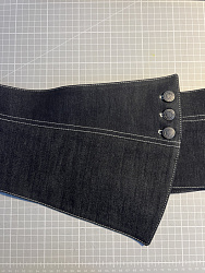 Решила сшить себе из остатков пояс баску из джинсы. Брала по своим размерам, но оказалась прям впритык. Следовало взять на размер больше.
