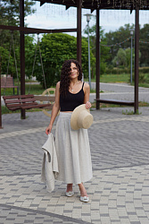 Отличная юбка. Любимица этого лета. Шила из 100 % льна, практически без изменений. Не люблю юбки на бедрах. Поэтому, чтобы юбка села на талию вставила в пояс широкую резинку по спинке.
