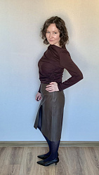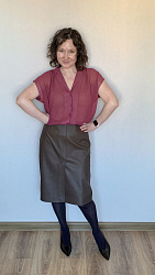 Очень красивая стильная модель юбки. Единственное увеличила длину на 4 см. Очень понятное описание. Впервые работала с кожей и мне понравилось, что получилось). Планирую сшить по этой выкройке еще юбку в длине миди.