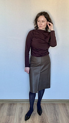 Думала, что уже такую длину никогда не надену! )) Но мне понравилась юбка. Сидит не плотно на талии, что для меня плюс. Описание понятное! Шить из экокожи одно удовольствие. Уже работала экокожей, поэтому сложностей вообще не возникло. Спасибо большое!