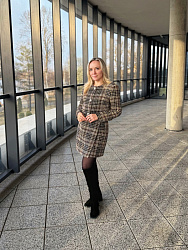 Моя первая юбка, шить было интересно и понятно. Заменила пуговицы на кнопки, потому что машинка начала зажевывать ткань, когда попадала на "ступеньку" шва. Возможно, дело в плотности ткани. Уже в процессе пошива жакета :) Спасибо за выкройку!