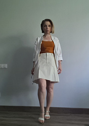 Всем добрый день! Сшила юбку, ношу. Всё устроило, а вот сделать фото все времени нет. Сделала её немного длиннее. Сшилась быстро. Инструкция - это отдельное удовольствие🤩😉 Майка Dori.