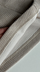 Интересная особенность — отсутствие одного бокового шва, вместо него клин, который создаёт лёгкую асимметрию в линиях.