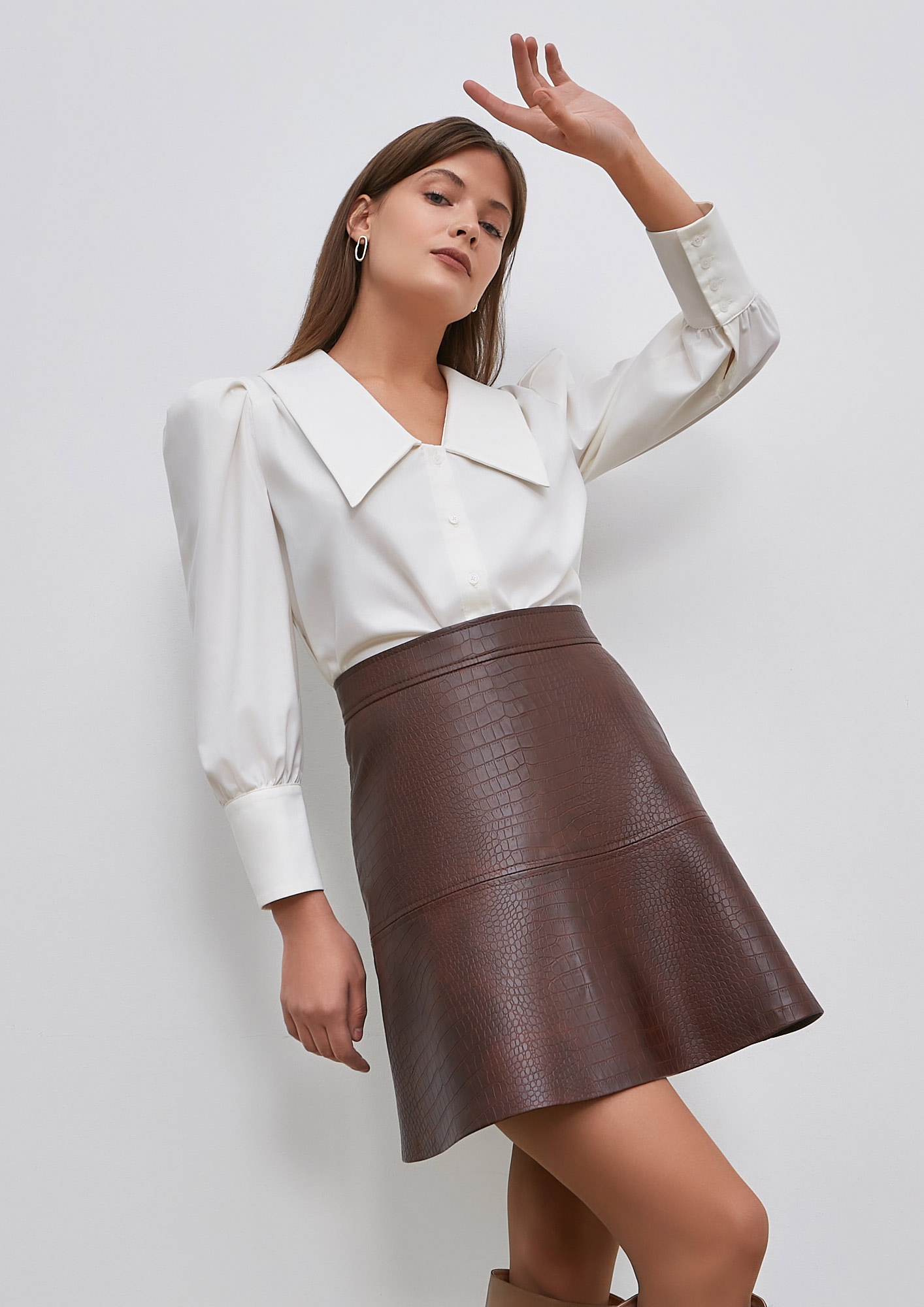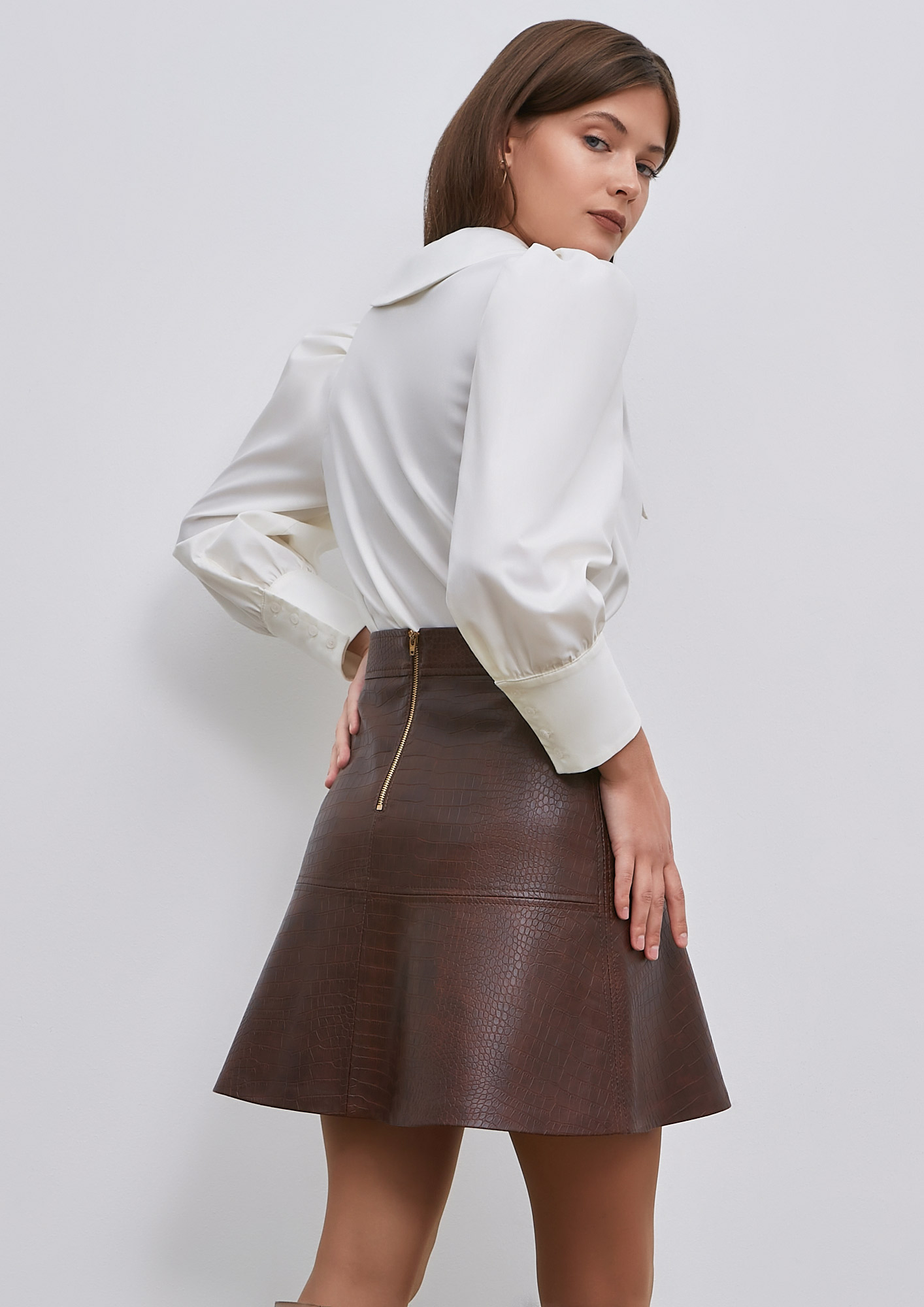Очень интересная выкройка юбки из экокожи. Кожу нашла такую же, как на модели. Результатом довольна! Корректировок не вносила. Посадка идеальная.