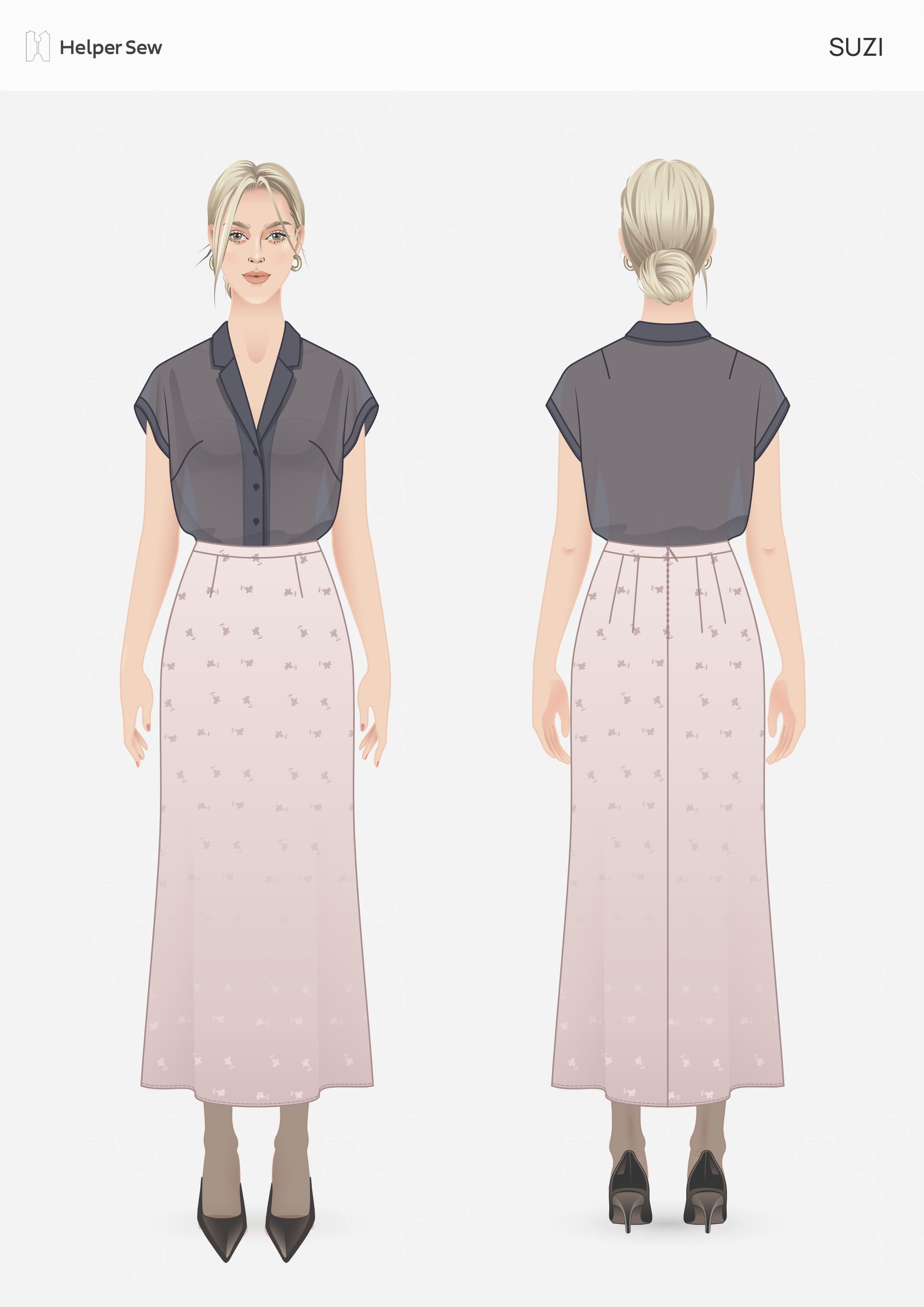 Юбка с красивым силуэтом, посадка ниже талии, на подкладке. Легко шить. Будет хорошо выглядеть в любом материале. Идеально с жакетом Nova .