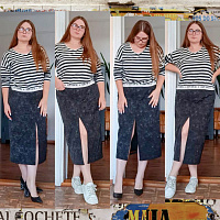 Выкройка понравилась. Сшила юбку из вареной джинсы за пол дня. Шьется легко, инструкции очень понятные и подробные. Швы закрывала бейкой.