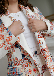 Жакет прекрасно сел. Подчеркивает женские формы. Понятная инструкция по пошиву. Спас!
