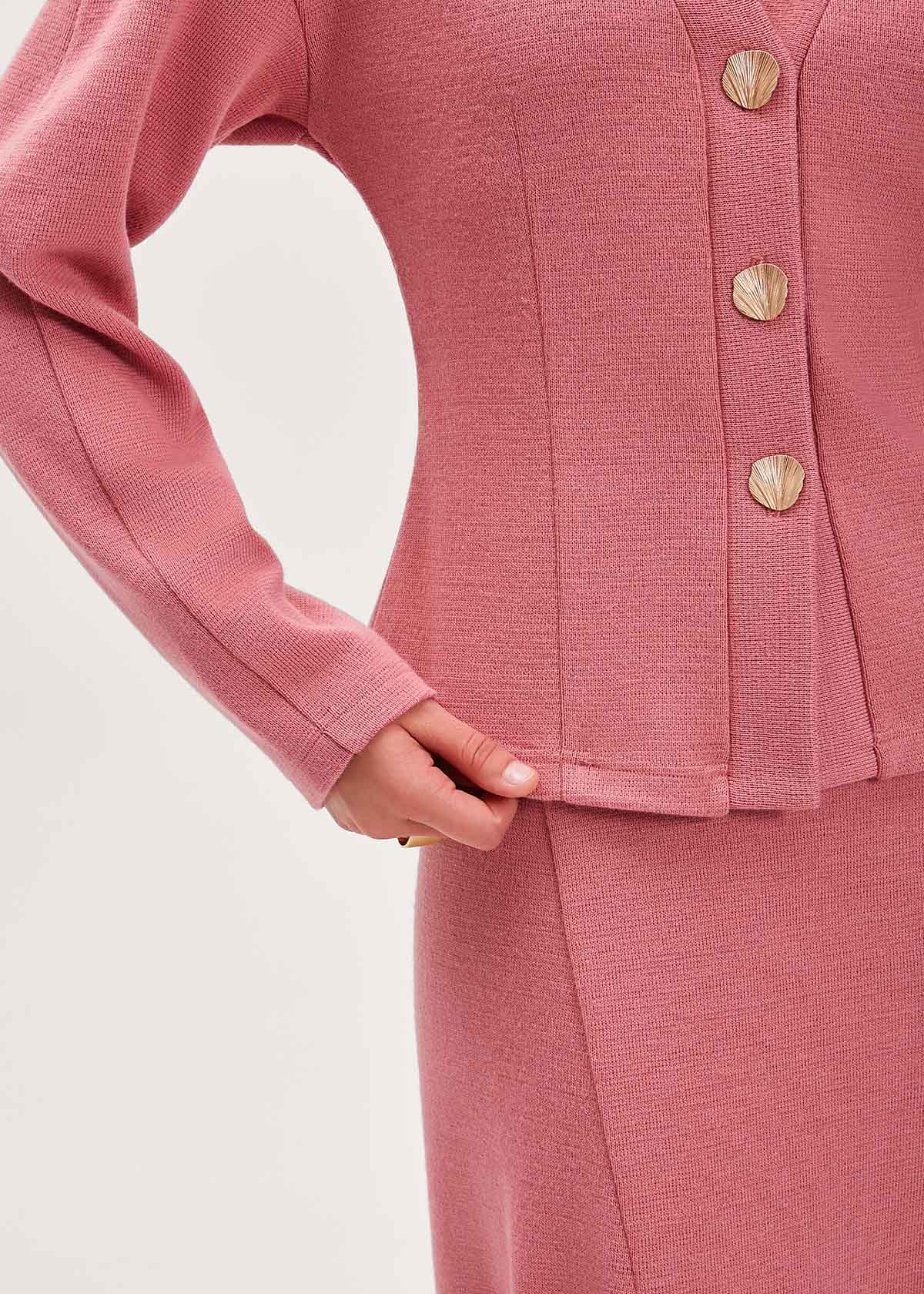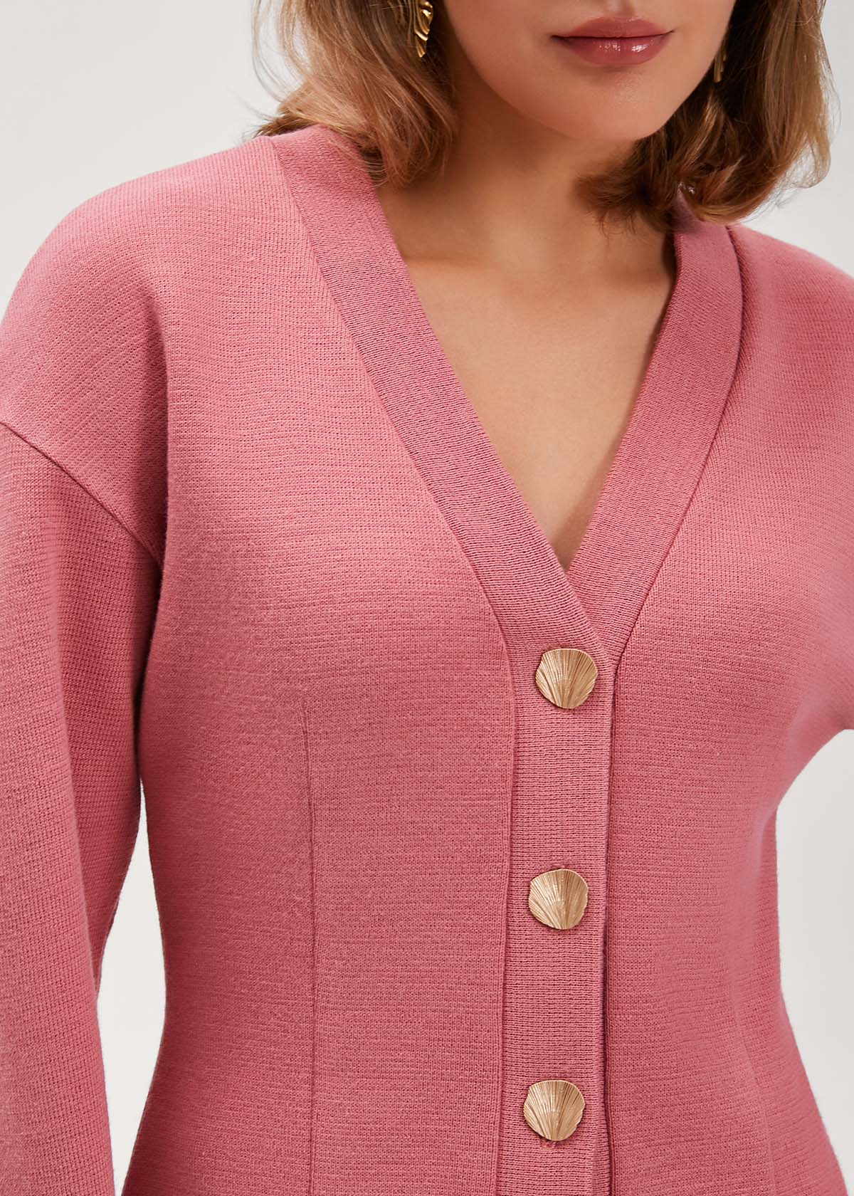 Красивая форма рукава, приталенный силуэт, нравится в этом кардигане все. У меня был шерстяной трикотаж, он сюда хорошо подошел. Размер и рост брала свой.