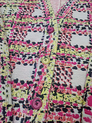 Шила из пушистого трикотажа, плотностью примерно 360-390 гр. Очень эффектный костюм получился, Сшила в комплекте с юбкой Enid. Проблем с петлями у меня теперь нет, т.к. летом купила петельную машинку (сбылась моя мечта), Кардиган получился универсальным, его можно носить и с джинсами, и с классическим брюками/юбкой. Результатом очень довольна. Кучу комплиментов получила. Спасибо Хелперам!!!
