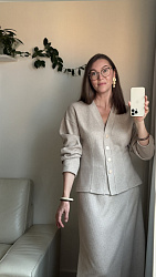 Спасибо большое за такой тёплый отзыв! Рады, что кардиган и юбка так хорошо вам подошли и вдохновили на новый проект 🫶🏻