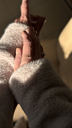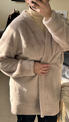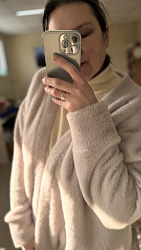 Шила из пушистого сильно растяжимого трикотажа. Не понравилось , нужна более стабильная ткань. Попробую из футера с корректировкой манжетов. Очень уж они широкие в выкройке, как будто растянулись. Мне больше нравится поуже. Поэтому носила мало и заправляю концы в брюки.