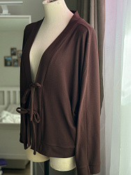 Выкройка простая и понятная, шьется за пару часов. Корректировок не вносила. Единственное, что с размером немного угадала, взяла размер 44 на ОГ 86, получился сильный оверсайз. Сам кардиган нравится, поэтому хочу сшить в 42 размере