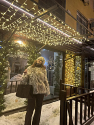 Раньше шила шубки по выкройкам верхней одежды, это долго и муторно. Здесь же получилось все легко и быстро. Мех у меня очень эффектный и самодостаточный, поэтому простейшая выкройка без вытачек и воротника идеально подошла. Мои параметры 93х73х100, рост 166. Размер брала 46.