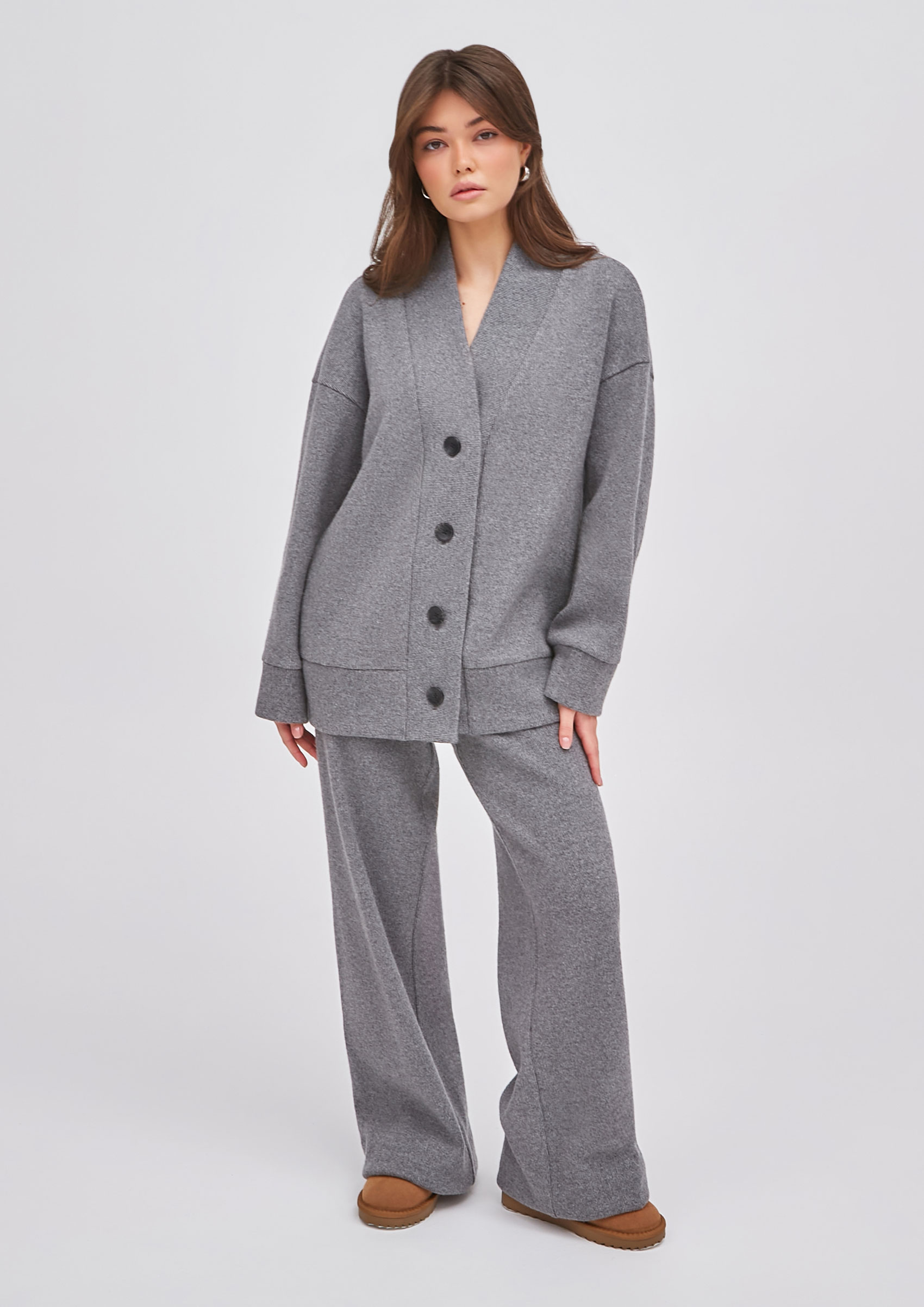 Кардиган шила к  брюкам  из футера трехнитки петля. Получился интересный костюм.