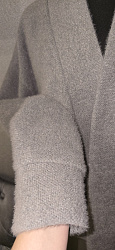 Материал альпака. Планка легла отлично. Планирую поставить вместо обычных пуговиц кнопки на магните. Пока кардиган не сходится на животе и ставить ничего не буду.