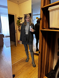 Это второй кардиган по выкройке . Размер 46 на параметры 96-64-90. Шить одно удовольствие , инструкция шикарная ( впрочем как всегда). Шила из двойного трикотажа с шерстью Вул Дабл, очень благородный костюм получился. Планку на фото отвернула для разнообразия и )). Прекрасно села , главное соблюдать контрольные метки, и да, ткань должна все таки тянуться ))). Добавила пояс ( ширина 4 см длина 155 см . Выкройку Рекомендую , база базная)).