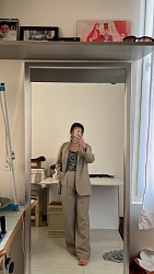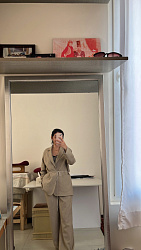 Увидела на вашей модели этот жакет и захотела повторить в светлых оттенках, даже пояс такой же подобрала🫶