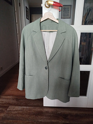 Отличная выкройка жакета. Взяла на размер меньше, для меньшего объёма. Шила изо льна. Немного попутала со шлицей, но разобралась.
