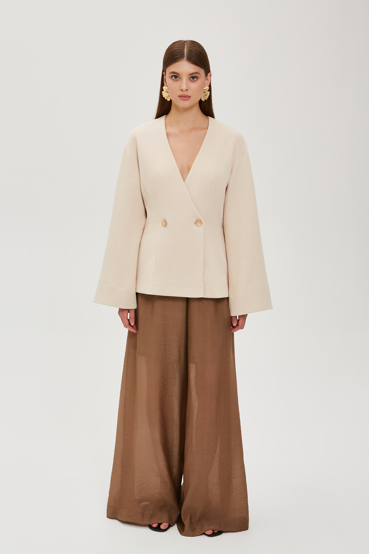 Жакет получился такой женственный, в стиле кимоно. Посадка отличная. Никаких изменений в пошиве, прекрасно)