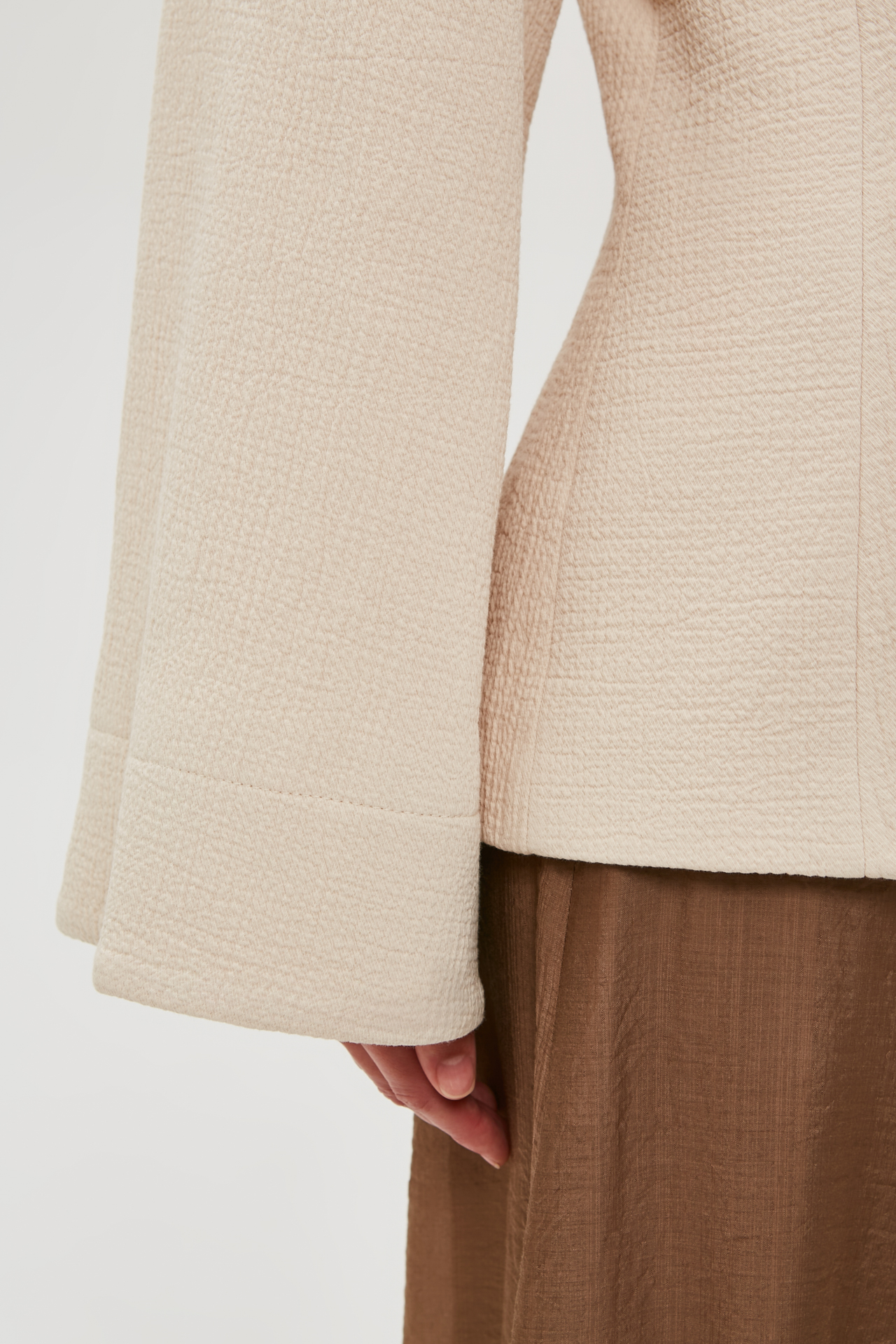 Хорошая, не классическая выкройка жакета. Идеально подошла для ткани по узбекским мотивам за счёт расклешенных рукавов. В выкройке ничего не меняла.