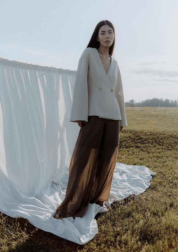 Выкройка хорошая, но я зачем-то взяла ростовку выше своей и это было ошибкой. Всё-таки у хэлперов все уже продумано и не нужно самой что-то выдумывать и брать не свой размер. Шила из льна, но лучше шить из более плотной ткани, тогда жакет будет держать форму и смотреться лучше.