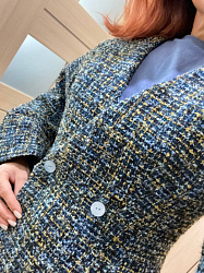 Сшила из твида, оказался прям плотный, дублировала полностью и несколько более плотным дублерином, чем положено, но по факту именно это и сделало результат столь классным. Подклад тоже довольно плотный. Благодаря плотности жакет очень хорошо держит форму, довольно теплый и выглядит супер!