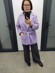 Сшила из трикотажа Пике. Очень понятно все описано. Шила в удовольствие) Получился теплый жакет на осень. Вносила коррективы: сделала вместо накладных карманов прорезные, так мне больше нравится. Сделала петлю и пришила пуговицу. На параметры 84:65:96 подошел размер 42. Немного убрала в области плеч. Велико в области плеч оказалось, но я быстро и легко это скорректировала.