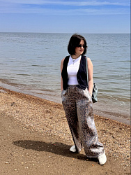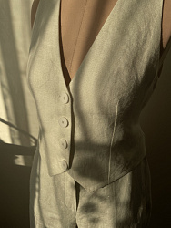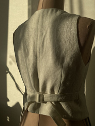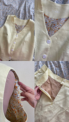 В первый раз шила изделие с подкладом. Жилет сшит из 100% конопли. Для подклада использовала штапель в тон. Инструкция очень понятная. Даже не ожидала, что так легко будет шить изделие с подкладом. Шила для сестры выкройка взяла в размер. Брюки сшиты по выкройке Марлен