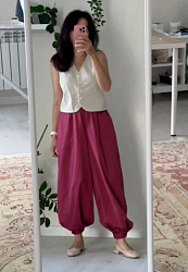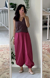 Прекрасная модель, все понравилось! Решила обработать традиционным способом, так как шила из льна. Планирую использовать выкройку ещё раз и сшить по ней топ.