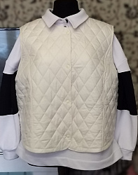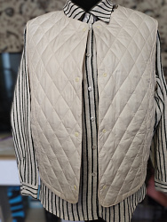 Жилет - милый. Края обработаны готовой х/б косой бейкой, вместо пуговиц поставила кнопки. Швы отсрочила на 0,1мм вразутюжку.