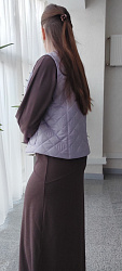 Прекрасная выкройка жилета. Сшила из стеганной джинсы с утеплителем альполюкс 100, на подкладке поливискоза. Вместо пуговиц поставила кнопки Альфа 15. Получилась теплая вещь.